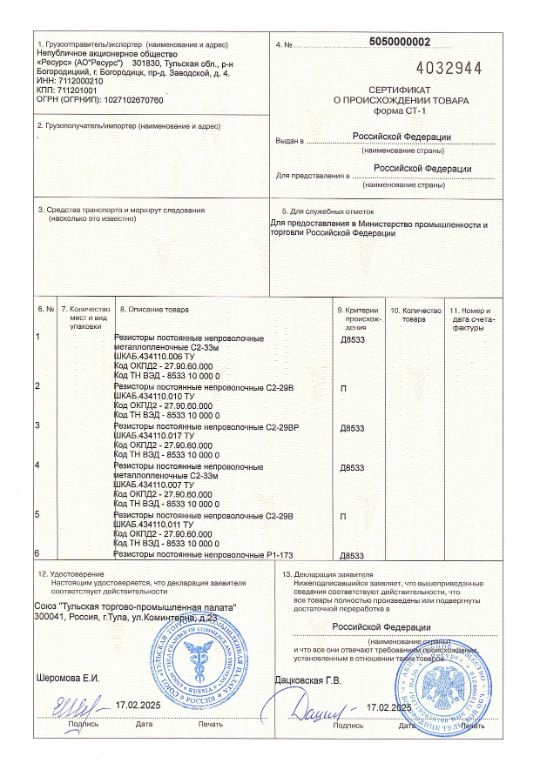 2. Правда ли, что резисторы АО «Ресурс» производятся на территории Российской Федерации?
